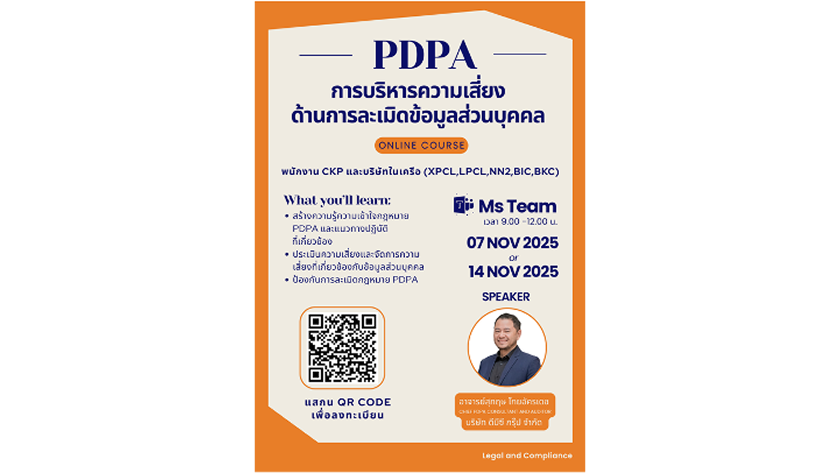 - • CKPower organized a training session on personal data breach risk management for executives and employees, conducted by DBC Group Co., Ltd., to strengthen the organizational culture of personal data protection and information security. The training focused on building fundamental knowledge of the Personal Data Protection Act (PDPA), the roles and responsibilities of executives and employees in complying with the law, and the assessment of personal data risks within operational processes across different departments. It also covered preventive measures, management approaches, and response procedures in the event of personal data breach incidents in order to enhance awareness and the capability to manage personal data risks appropriately.