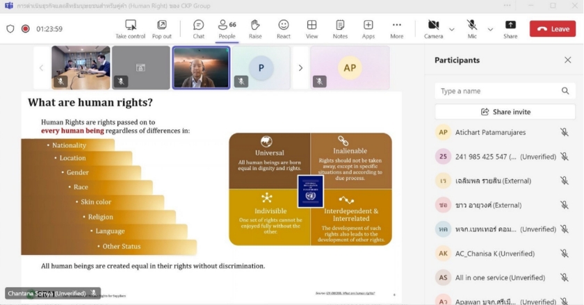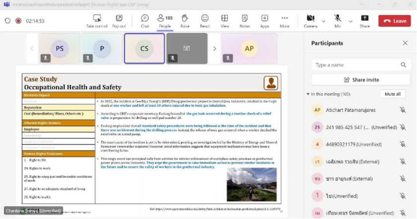 In 2024, the Company conducted human rights training for critical and non-critical suppliers, totaling 497 companies, across all power plants. The objective was to communicate CKPower’s human rights policy and related practices to foster their understanding of human rights principles and ability to apply them in their business operations.