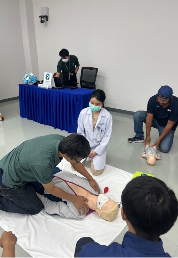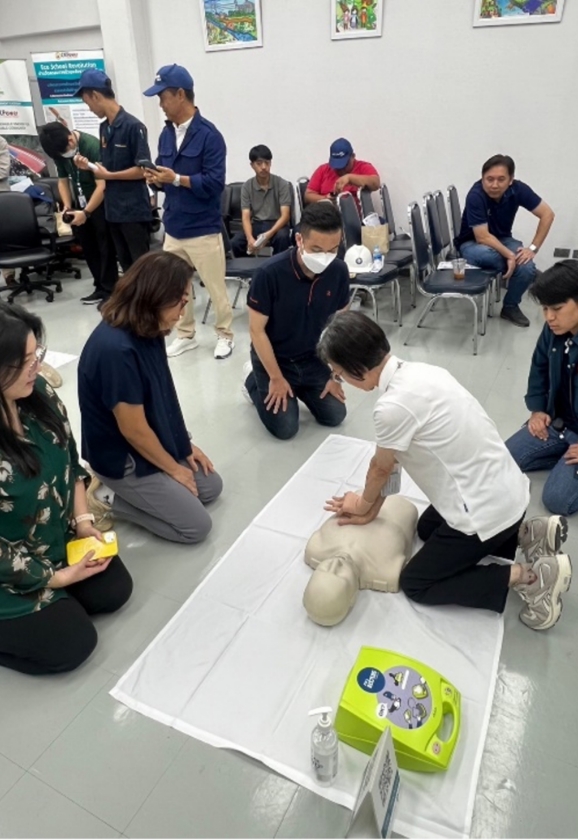 In 2024, Bangpa-in Cogeneration Power Plant organized first aid and cardiopulmonary resuscitation (CPR) training for 15 Non-Critical Tier 1 Suppliers. The session was led by an expert physician, who provided training on medical safety knowledge and skills.