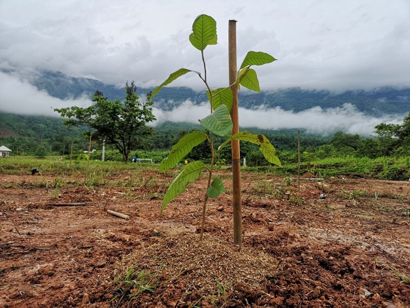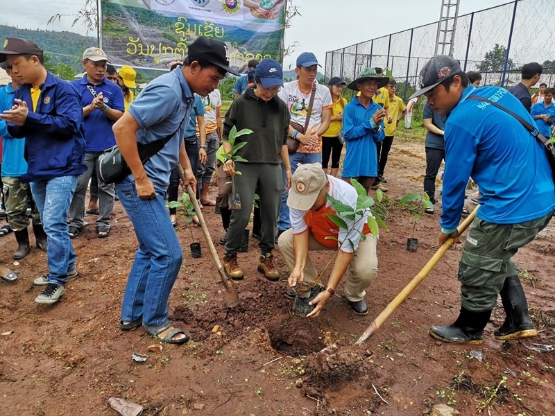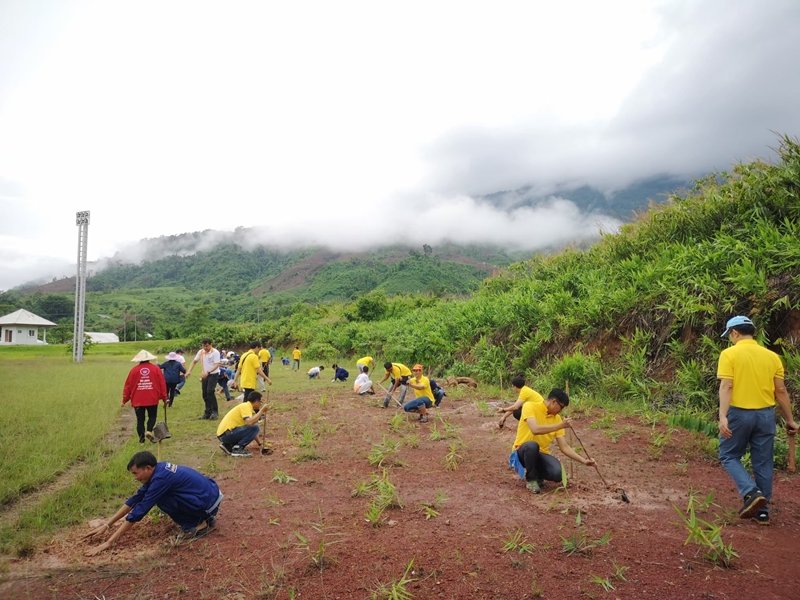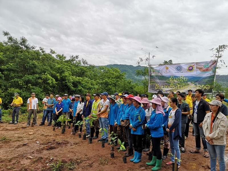 On June 1, 2019, Nam Ngum 2 Power Company Limited organized a tree planting activity on the National Tree Day of the Lao PDR in association with the Electricity Generating Authority of Thailand and Electricite du Laos, by planting 100 Siamese Rosewoods and 100 rubber trees (Yang) in the area of the courtyard beside the football field. This is because Siamese Rosewood is considered a sacred wood with a high economic value and is commonly used to make furniture, wagons, lathes and carvings, combs, walking sticks, tools and utensils, and even musical instruments. Not only that, it can be also used as herbal medicine. The Siamese Rosewood is regarded as a sacred wood used in construction of buildings or construction of various artificial foundations. Thai people have ranked the “Siamese Rosewood” in the top 9 species of sacred trees which should be planted in gardens. The Yang tree is one of the plants which is about to become extinct from the Thai forest system. The Yang tree is a multipurpose wood and almost every part of it can bring benefits, both directly and indirectly. The Forest Act B.E. 2454 (1911) considers the Yang tree to be as important as teak. The Yang tree provides high economic value as when it reaches 20 years, it will worth Baht 15,000-20,000, which is equivalent to an average value of Baht 8 per day. If 100 Yang trees are planted, it will generate revenue in an amount of Baht 800 per day or Baht 24,000 per month or averaging Baht 288,000 per year.