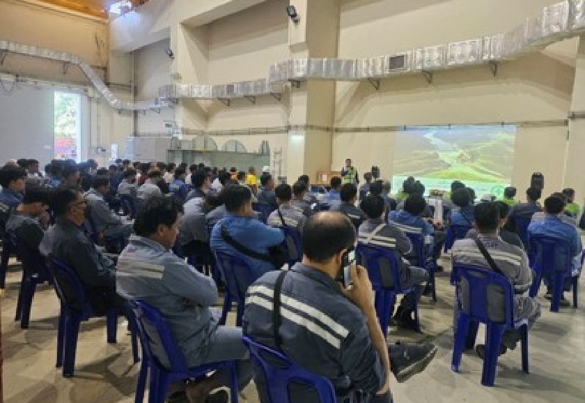 อบรมชี้แจงความปลอดภัยให้กับผู้รับเหมาที่เข้ามาทำงานภายในพื้นที่โรงไฟฟ้าพลังน้ำ ไซยะบุรี